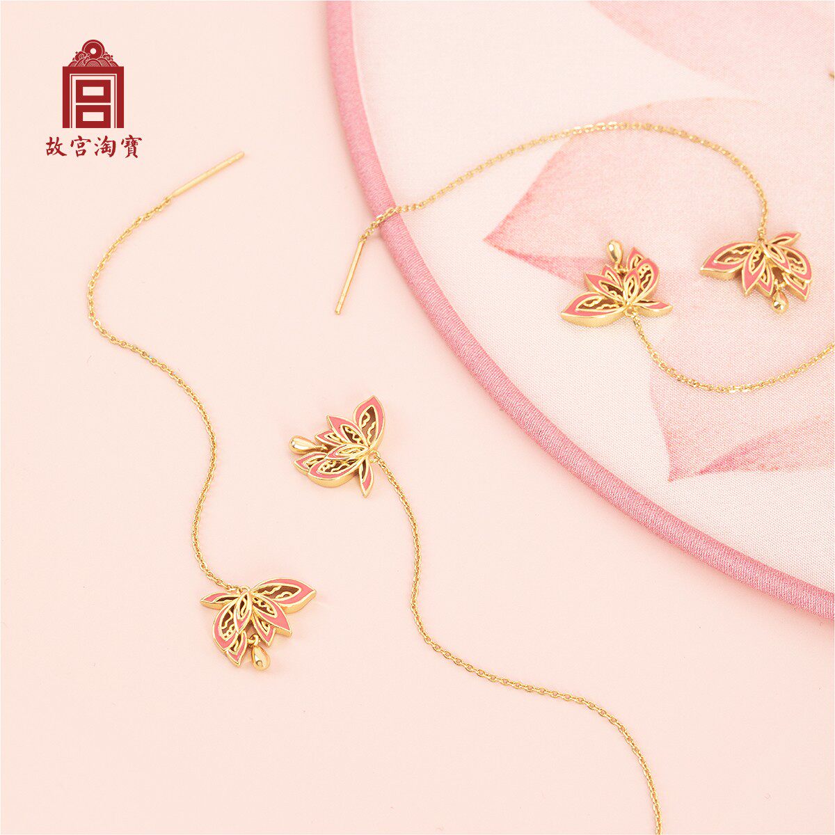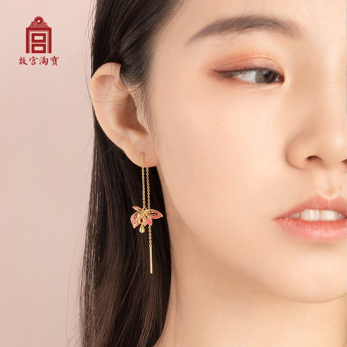 (Forbidden City Taobao) Goulian Ear Cord - Gold-plated Chinese style ancient style earrings Earrings long style show thin face