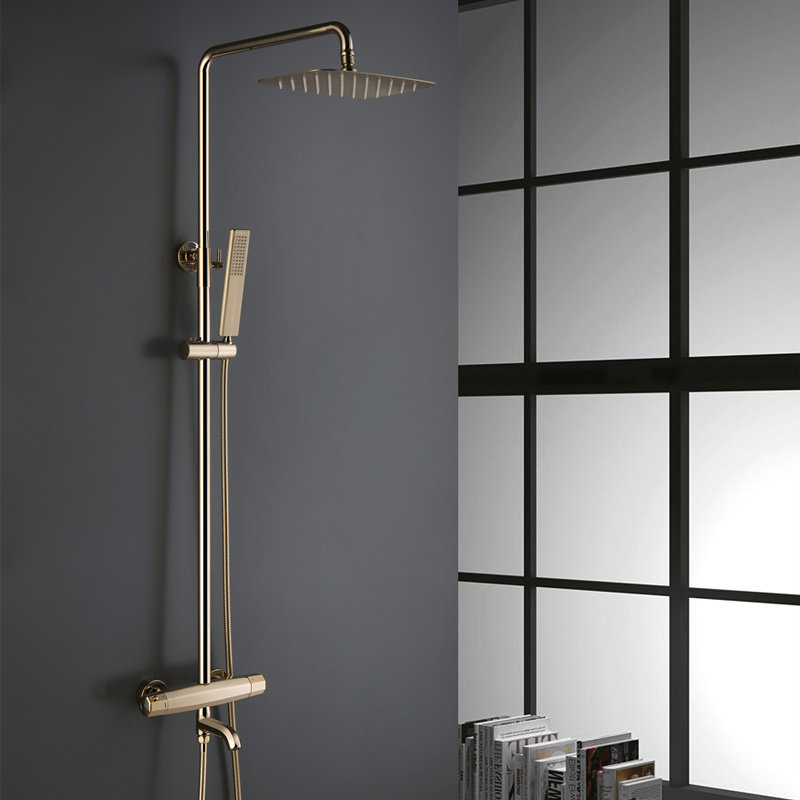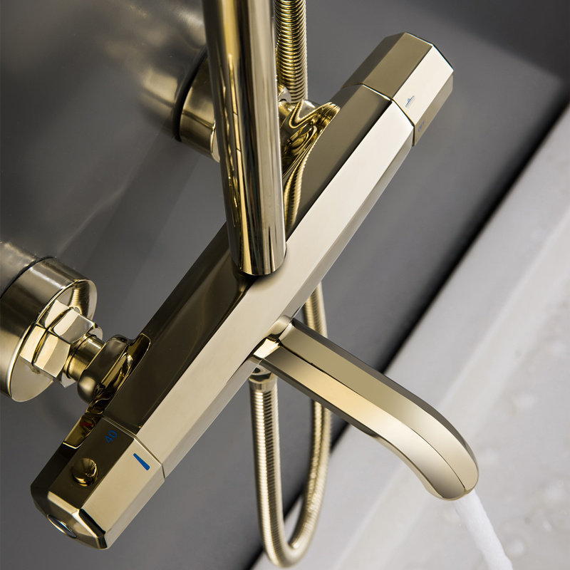Golden thermostatic round shower head suit gold thermostatic square shower suit single handheld shower head shower gold thermostatic water mixing valve