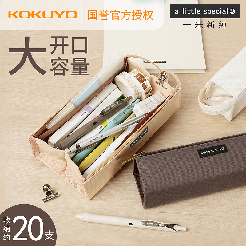 Japan kokuyo kokuyo pen bag Large capacity students with retro style literary stationery bag Simple portable pencil box Women's stationery storage box Japanese ins net red Salt department style primary school high school