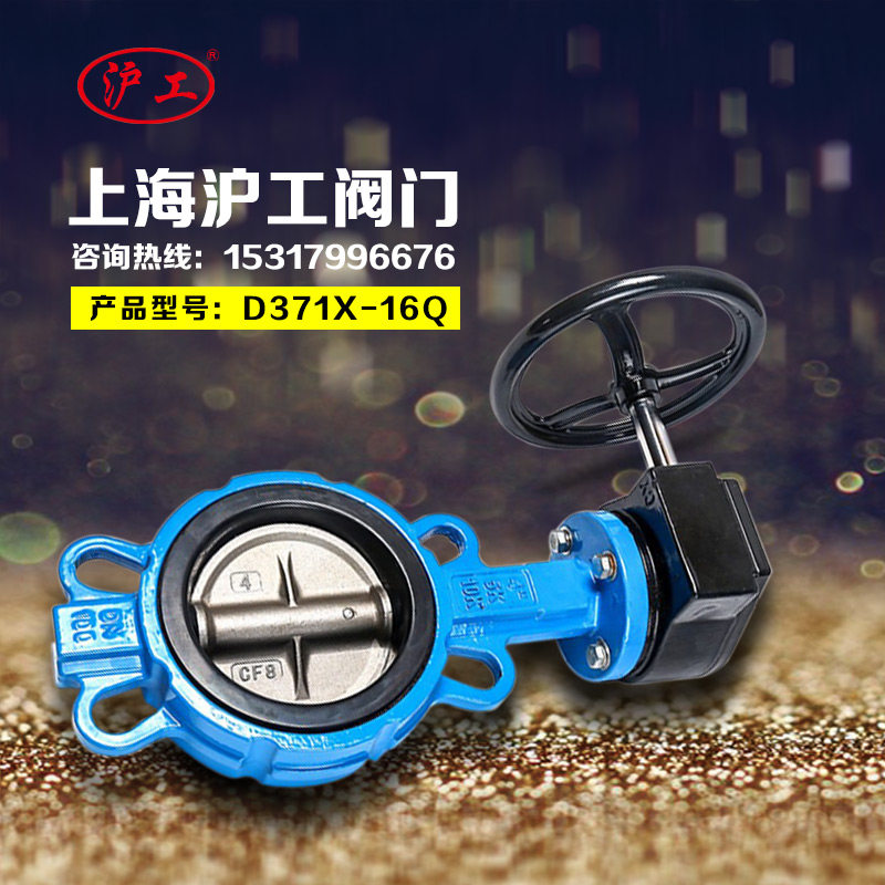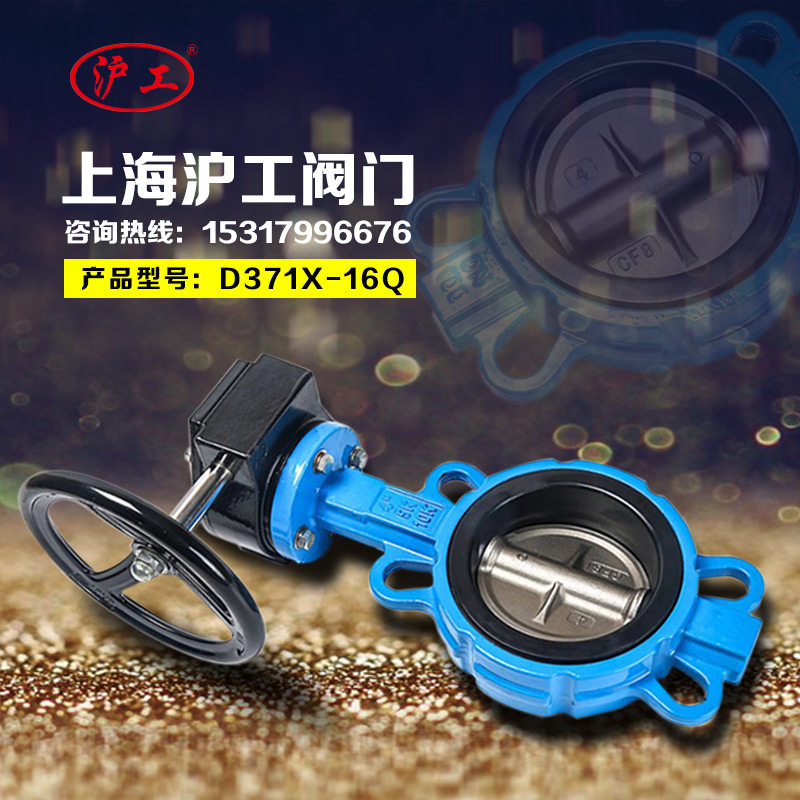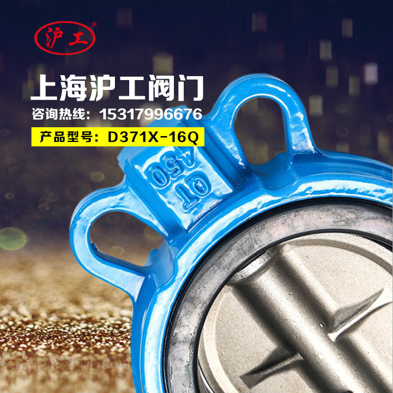 Shanghai Hugong valve D371X-16Q Ductile iron soft seal turbine wafer butterfly valve DN50 65 80