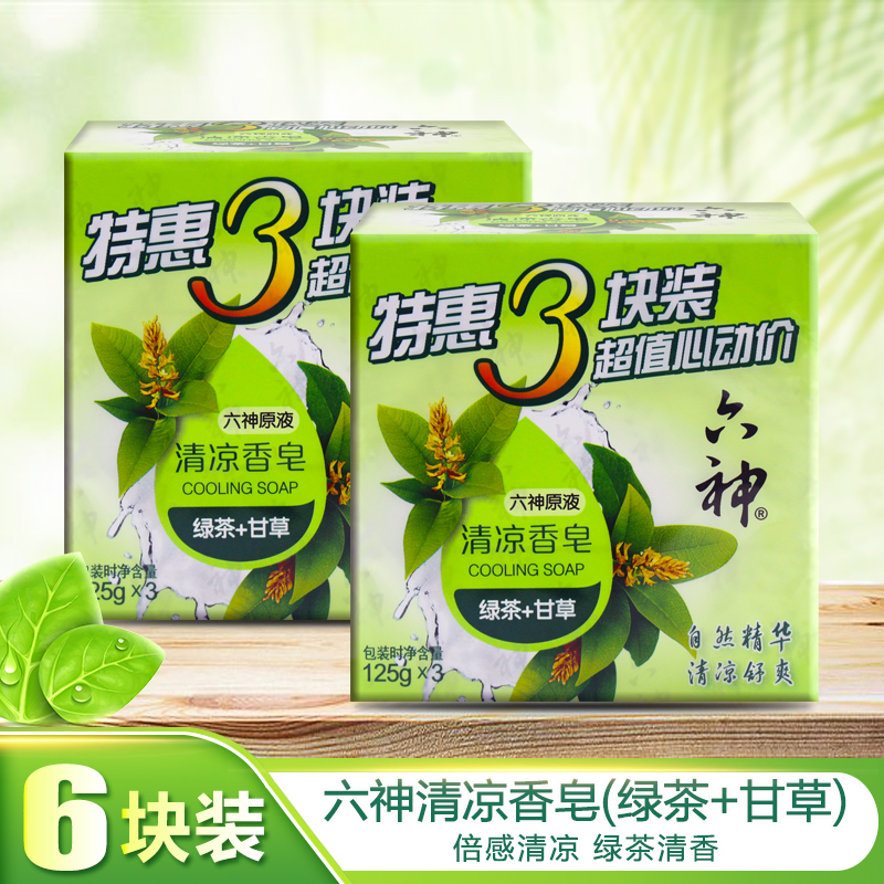 Six Gods green tea licorice soap 125g*6 pieces of special handwashing skin cleaning face soap Shanghai Jiahui