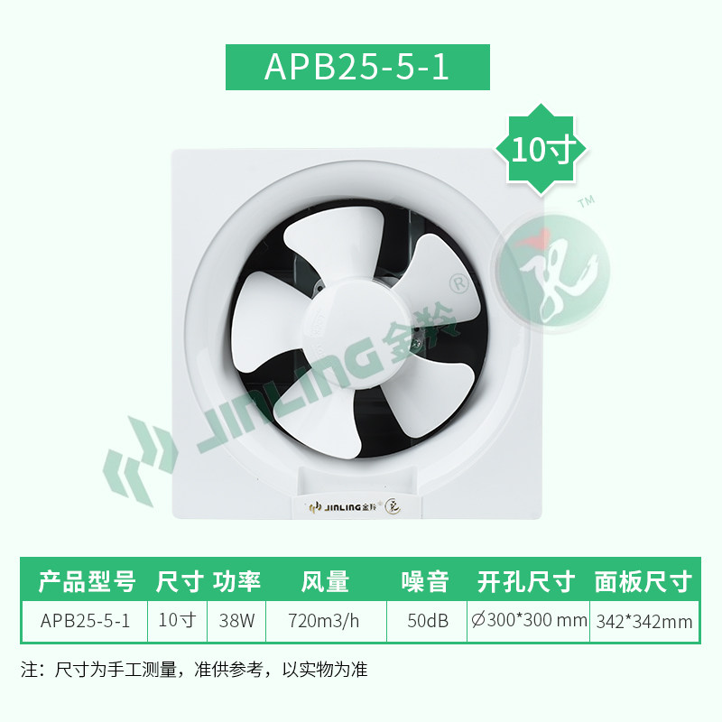 Jinling exhaust fan APB25-5-1 semi-plastic blinds mute home bedroom wall glass 10 inch exhaust fan