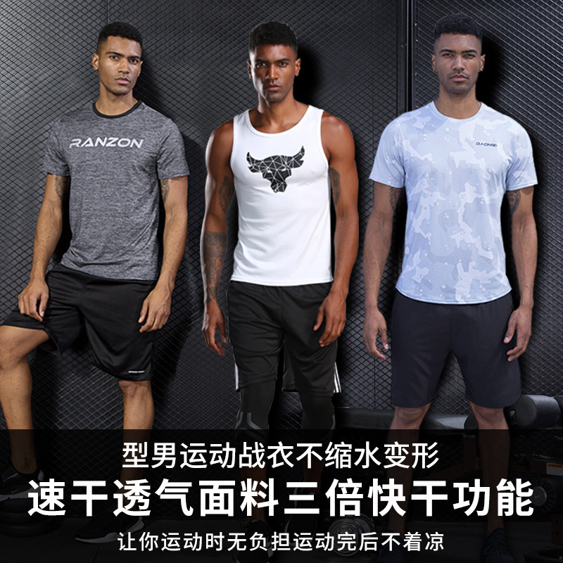 Sports suit men's summer shorts Short sleeve fitness breathable quick-drying ice silk vest casual five-point pants