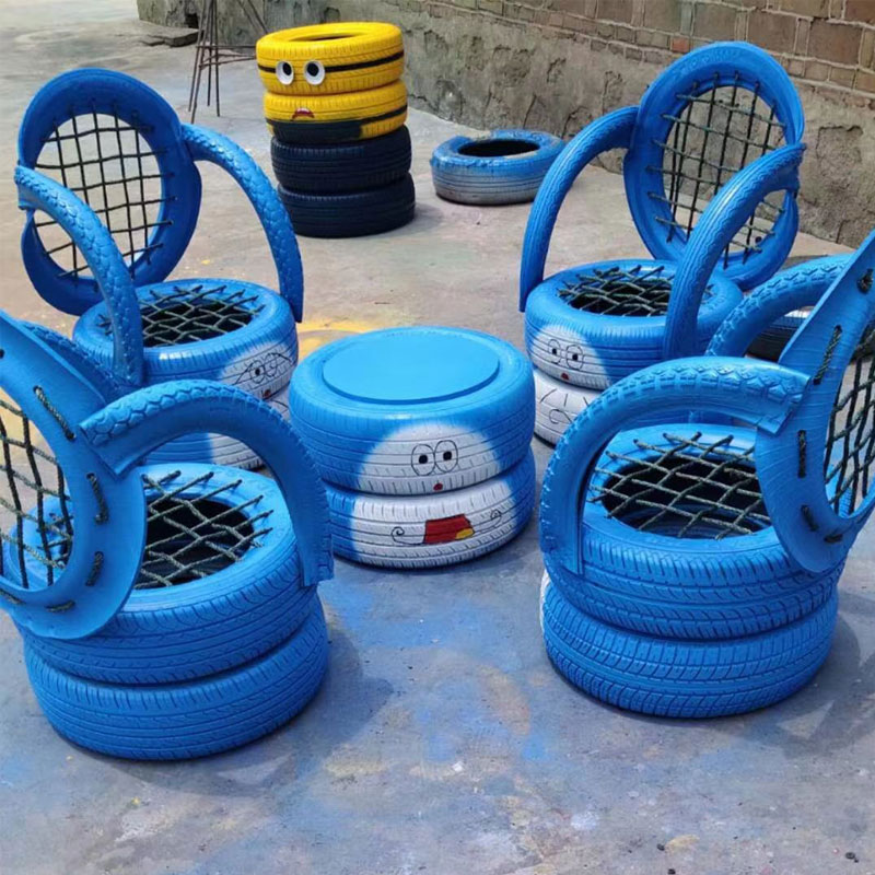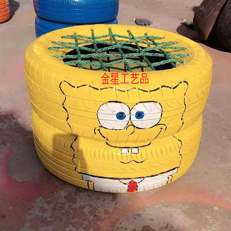 tire handicraft kindergarten tire painting flower pot landscape decoration seat chair waste tire creative transformation
