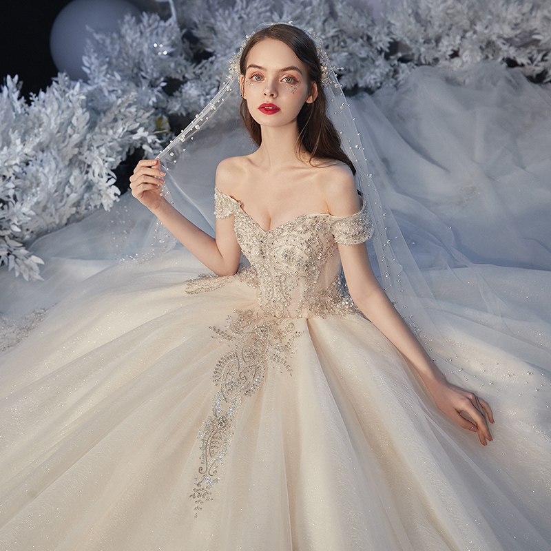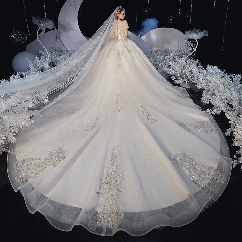 Word shoulder main wedding dress 2021 new bridal temperament Forest department super fairy dream big tail luxury Hepburn little man
