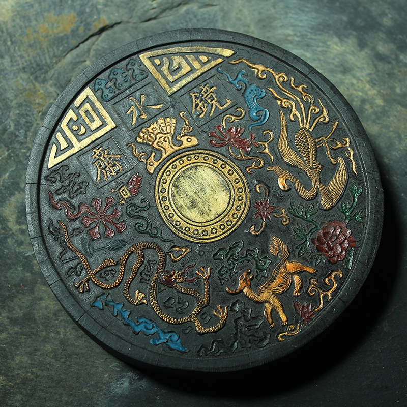 Old collection of pine smoke and old ink ingots "Mirror Water" Four Treasures of the study, old ink in stock in the 1990s