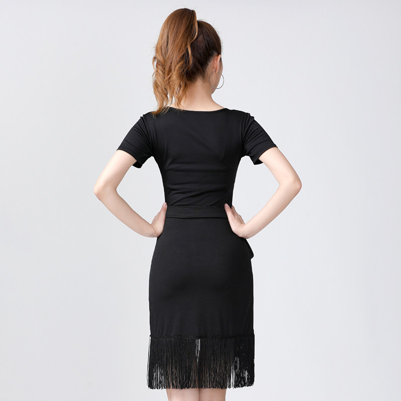Summer Latin dance tassel dress suit loose casual practice clothes female into professional chacha social dance short sleeves