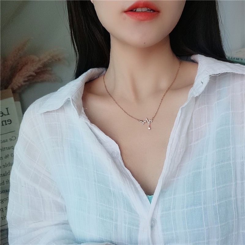 Japanese and Korean titanium steel anti-allergic beating heart chain short necklace short necklace for girlfriend net red neck pendant