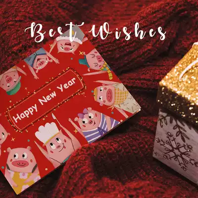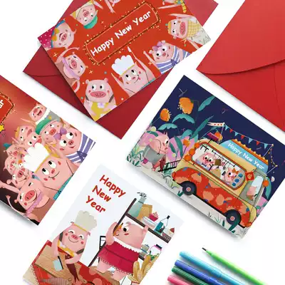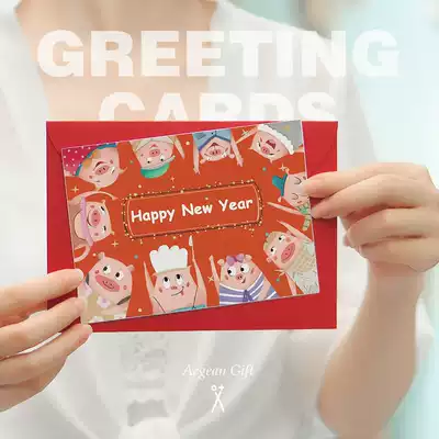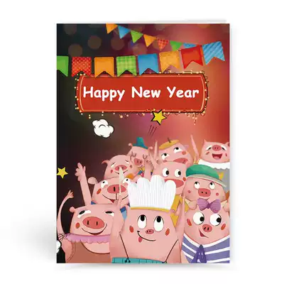 Birthday pig doll greeting card hand-painted design custom graduation festival printing hot stamping uv bump small batch Chengdu