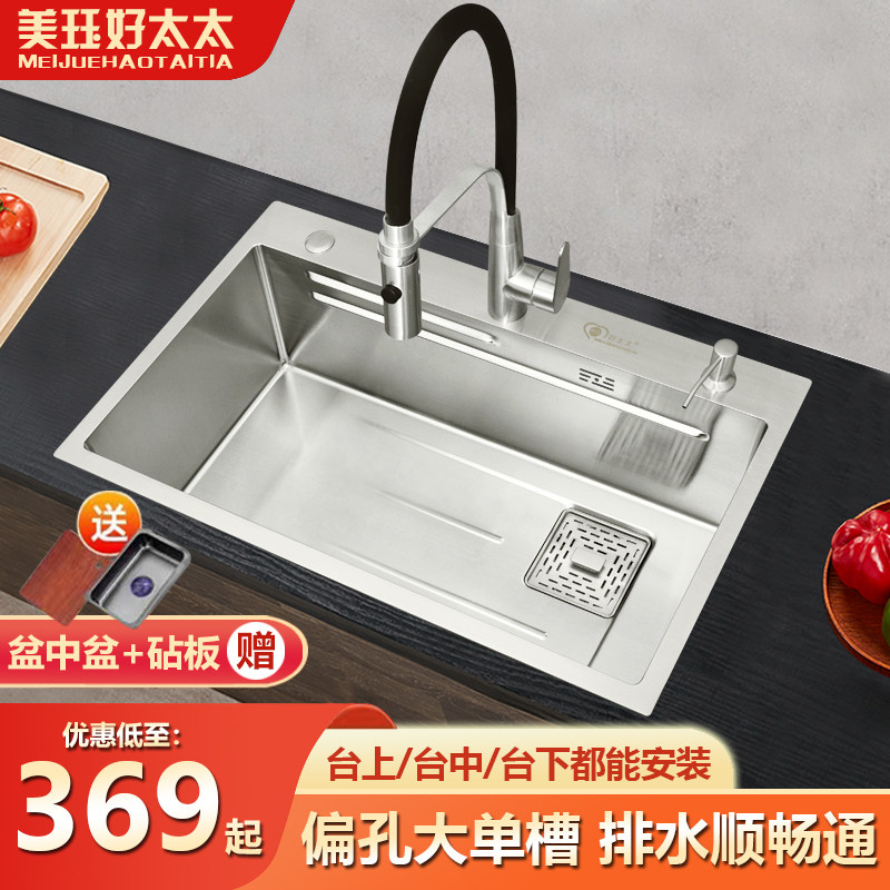 Kitchen 304 stainless steel handmade sink thickness beneath the wash basin wash handwash dishwash pool large single tank