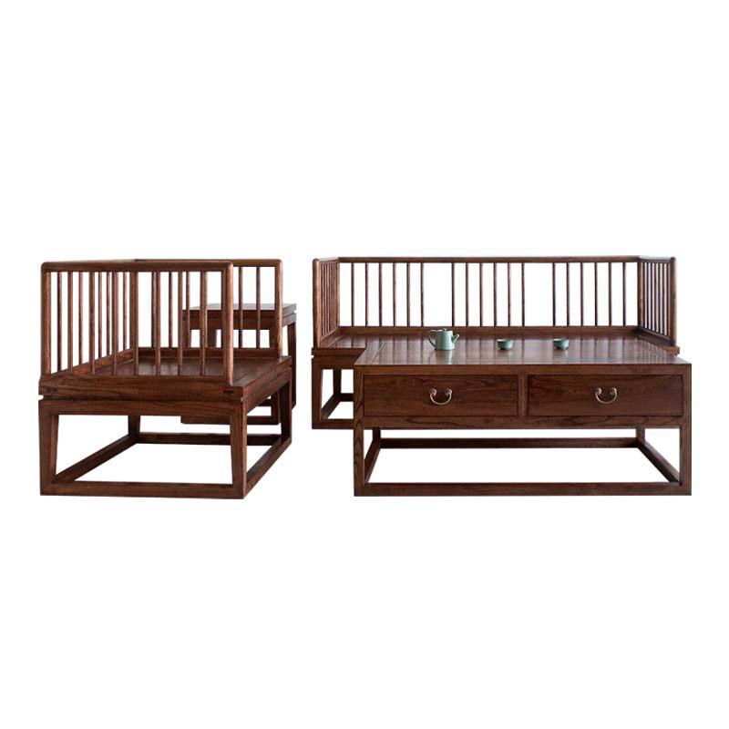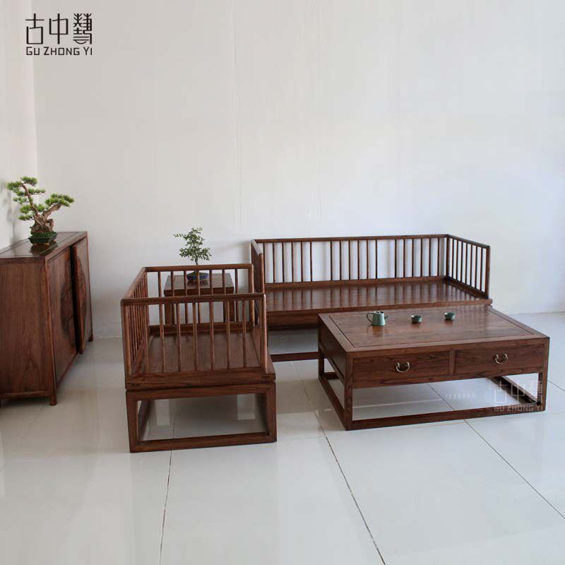 New Chinese style modern solid wood sofa Zen coffee table simple corner sofa combination light luxury living room furniture customization