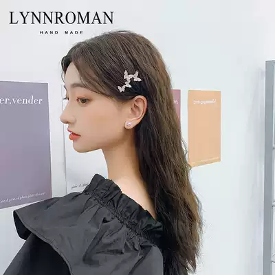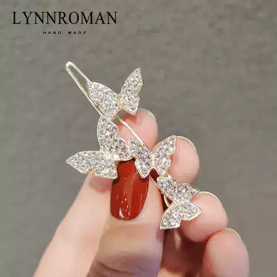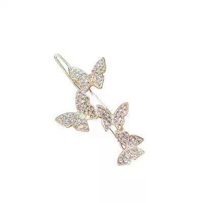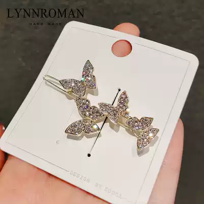 Clip headdress Korean elegant shiny butterfly hairclip rhinestone bangs clip girl side clip frog buckle Net red hair card