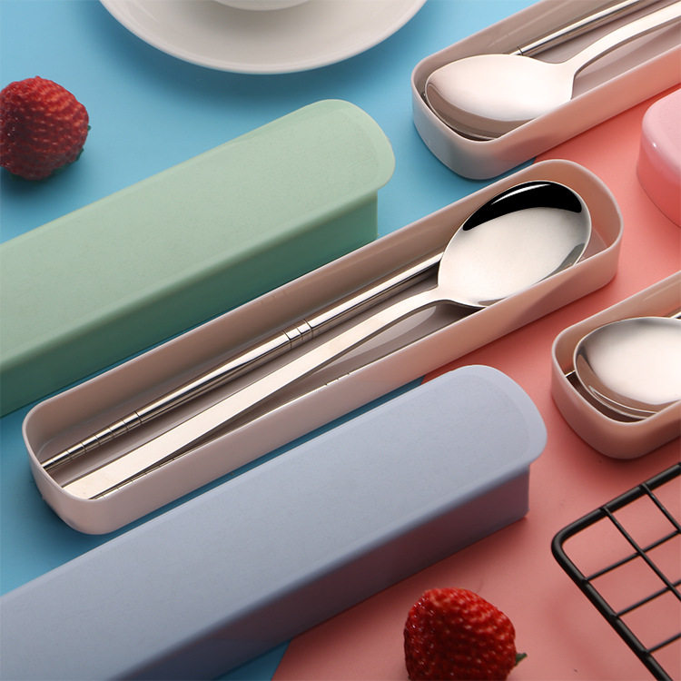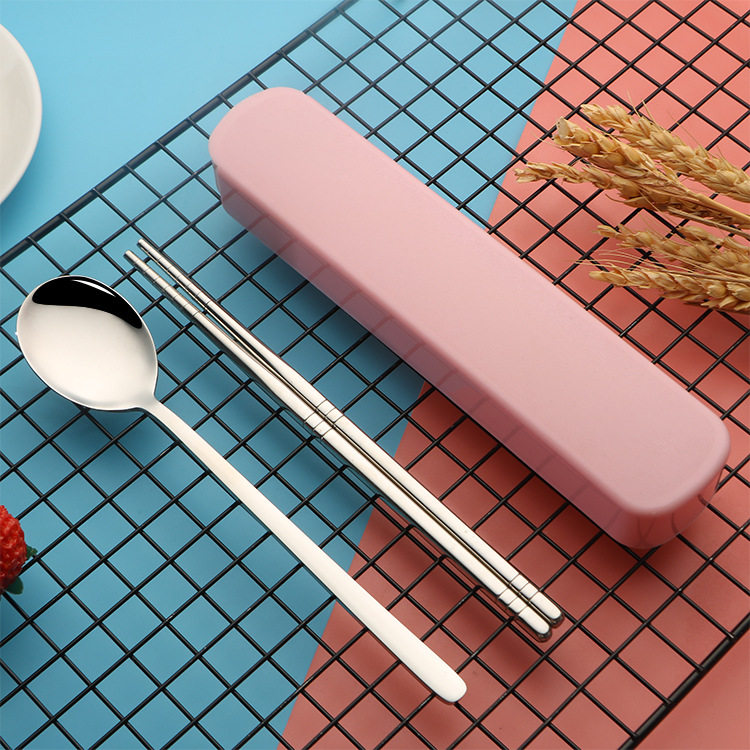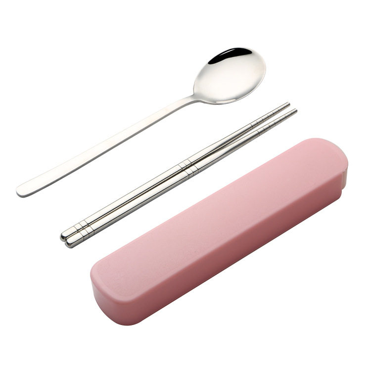 Pink stainless steel spoon chopstick (with case) green stainless steel spoon chopstick (with box)