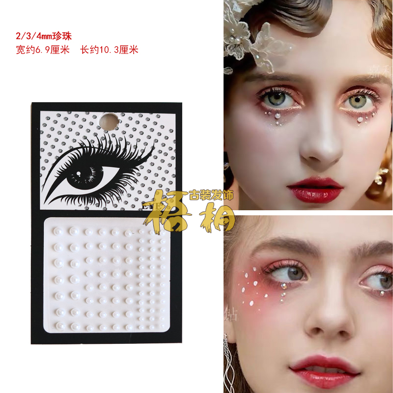 Ancient Qing Ping Le Same Makeup Queen Cao Mermaid Tears Blank Makeup Half-Round White Pearl Sticker