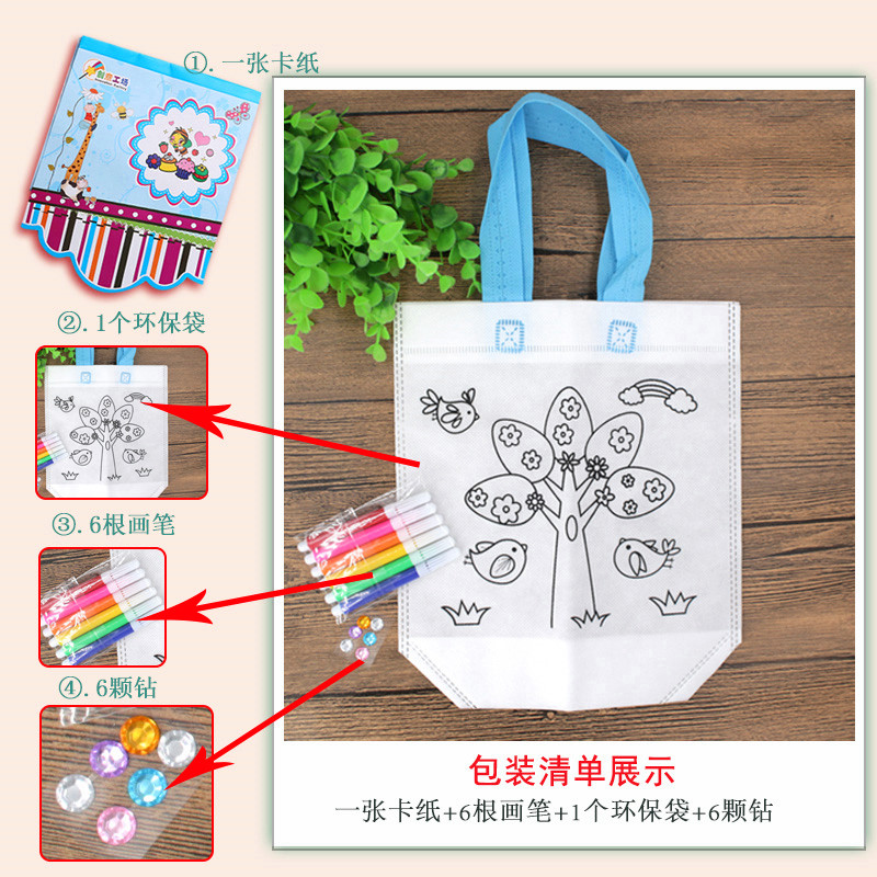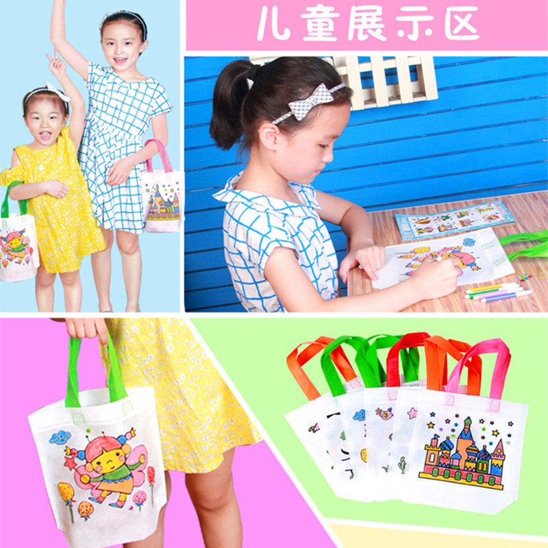 diy eco-friendly bag graffiti bag painting unwoven bub bag fill color painted children handmade material hand-painted