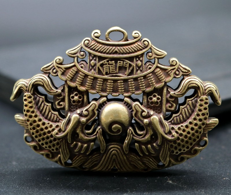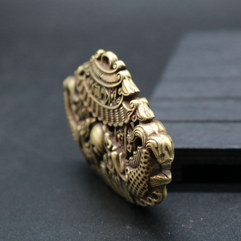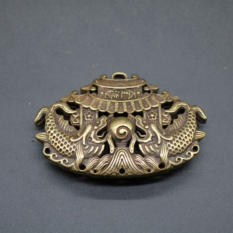 Ancient Play Bronze Ware Antique Miscellaneous Collection Imitation Ancient Brass Double Dragon Show Beads Gantry Bronze Lock Pendant Old Stock Old Objects