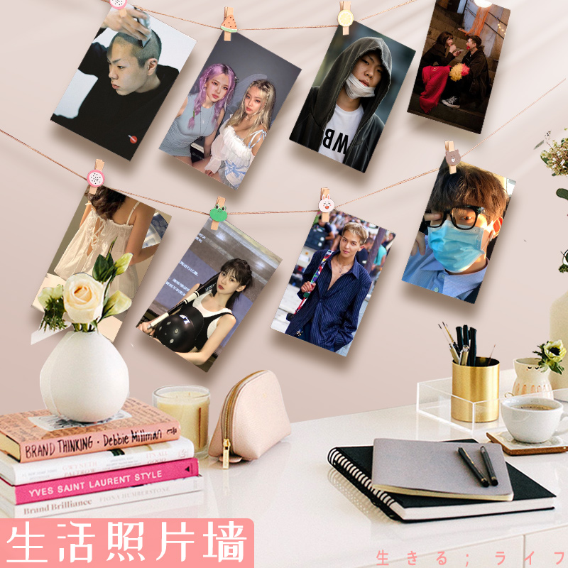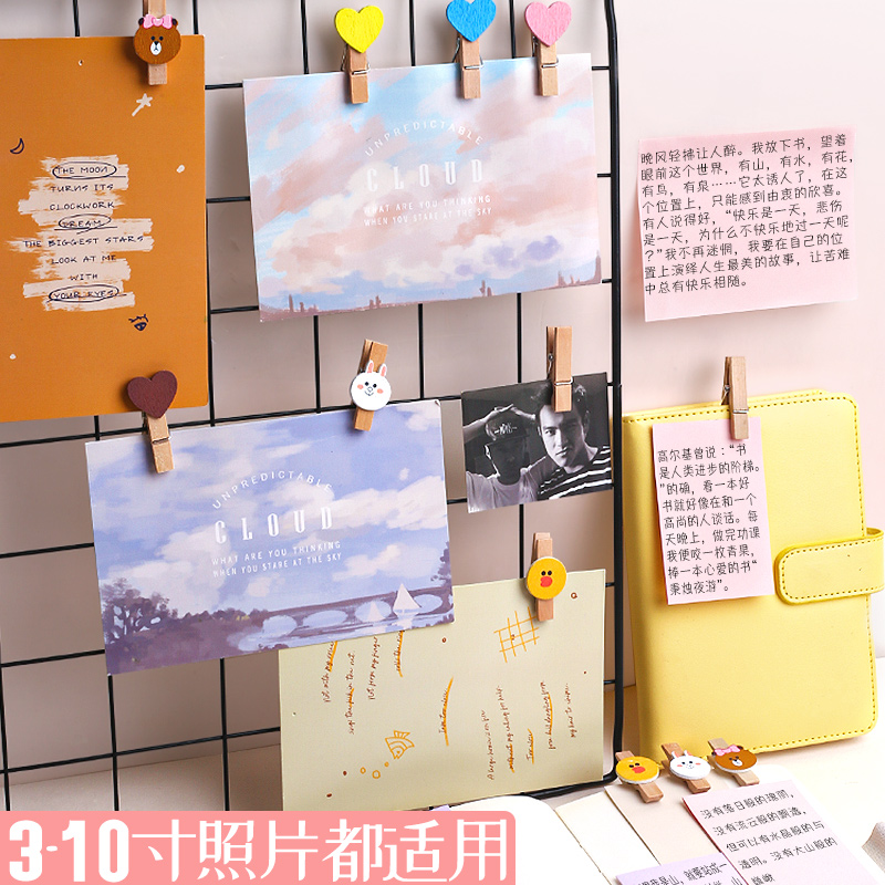 Color photo clip wooden clip hanging photo wall decoration hemp rope clip rope hanging rope small photo wood wooden photo album hanging wall with hanging rope cartoon creative cute wooden log color postcard
