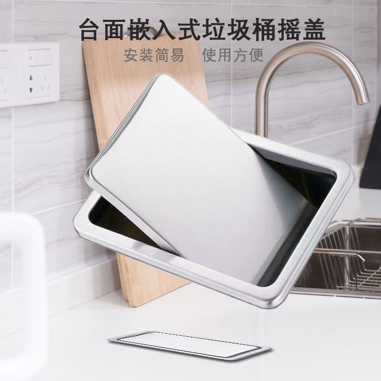 Large stainless steel trash can lid kitchen countertop embedded decorative cover 25CM round flip desktop shake cover