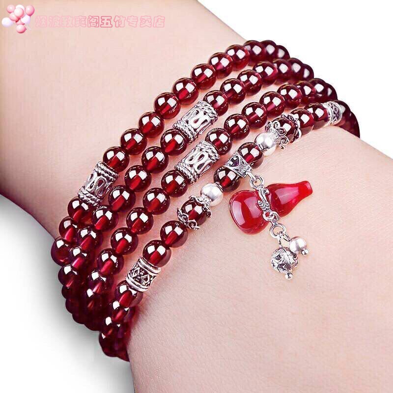 Wine Red Multi-Circle Multilayer Pomegranate Stone Fox Handmade of the year Gourd Crystal Bracelet Birthday Gift Woman
