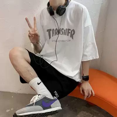 Harajuku wind T-shirt men loose trend Hong Kong wind ins wild hip hop half sleeve Tide brand summer tide men short sleeve clothes