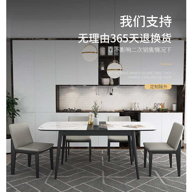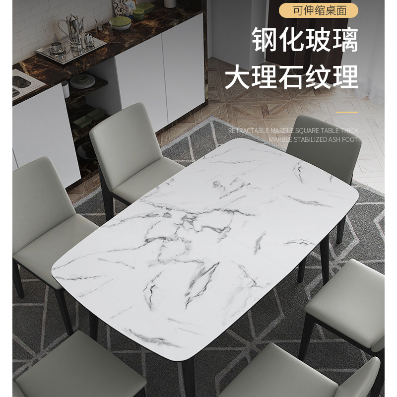 Nordic solid wood marble dining table and chair combination retractable folding rectangular function household small-sized dining table