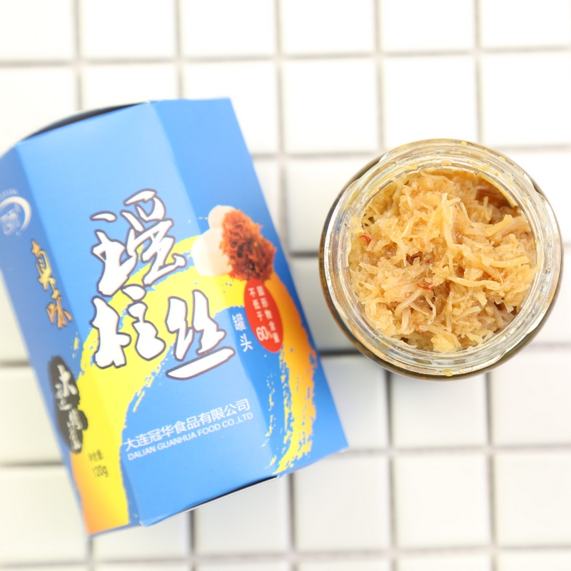 Si and scallop silk 120g Dried scallop Canned seafood specialty snacks Ready-to-eat scallop meat spicy
