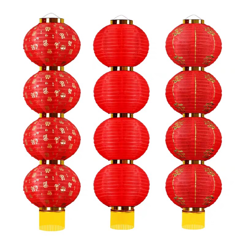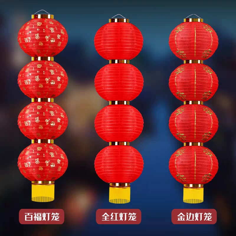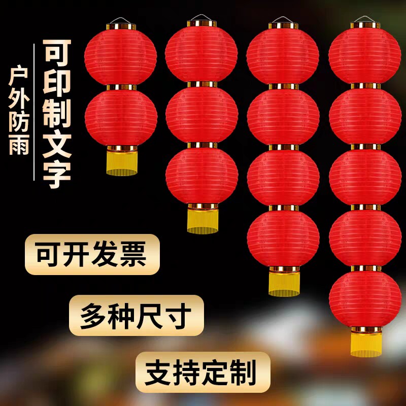 Large Red Lantern Outdoor Waterproof Advertisement Customized Print Character Small Lantern Farmhouse Three-45 Round Tandem Lamp String Cage Hanging Decoration