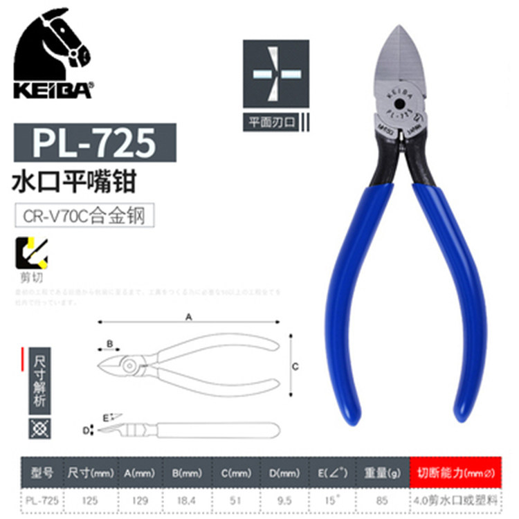 Japan Horse-card KEIBA imports MN-A05 diagonal-billed pliers labor-saving ultra-hard flat tip clippers PL725 726 water gap pliers