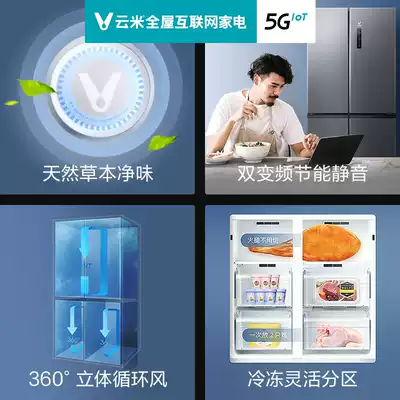 Yunmi 450-liter cross four-door four-door variable frequency intelligent air-cooled frost-free household large-capacity refrigerator