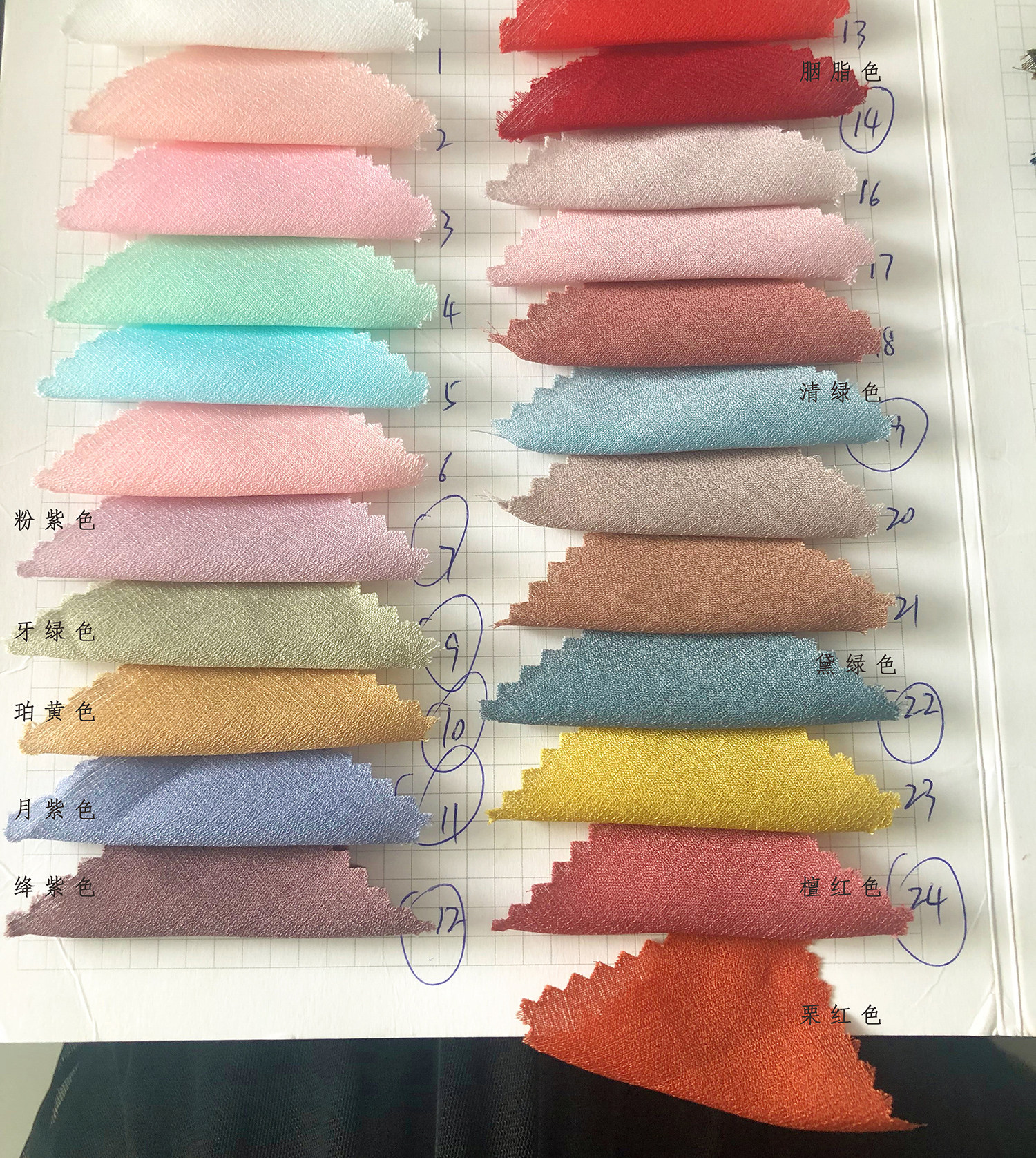 The fabrics are: