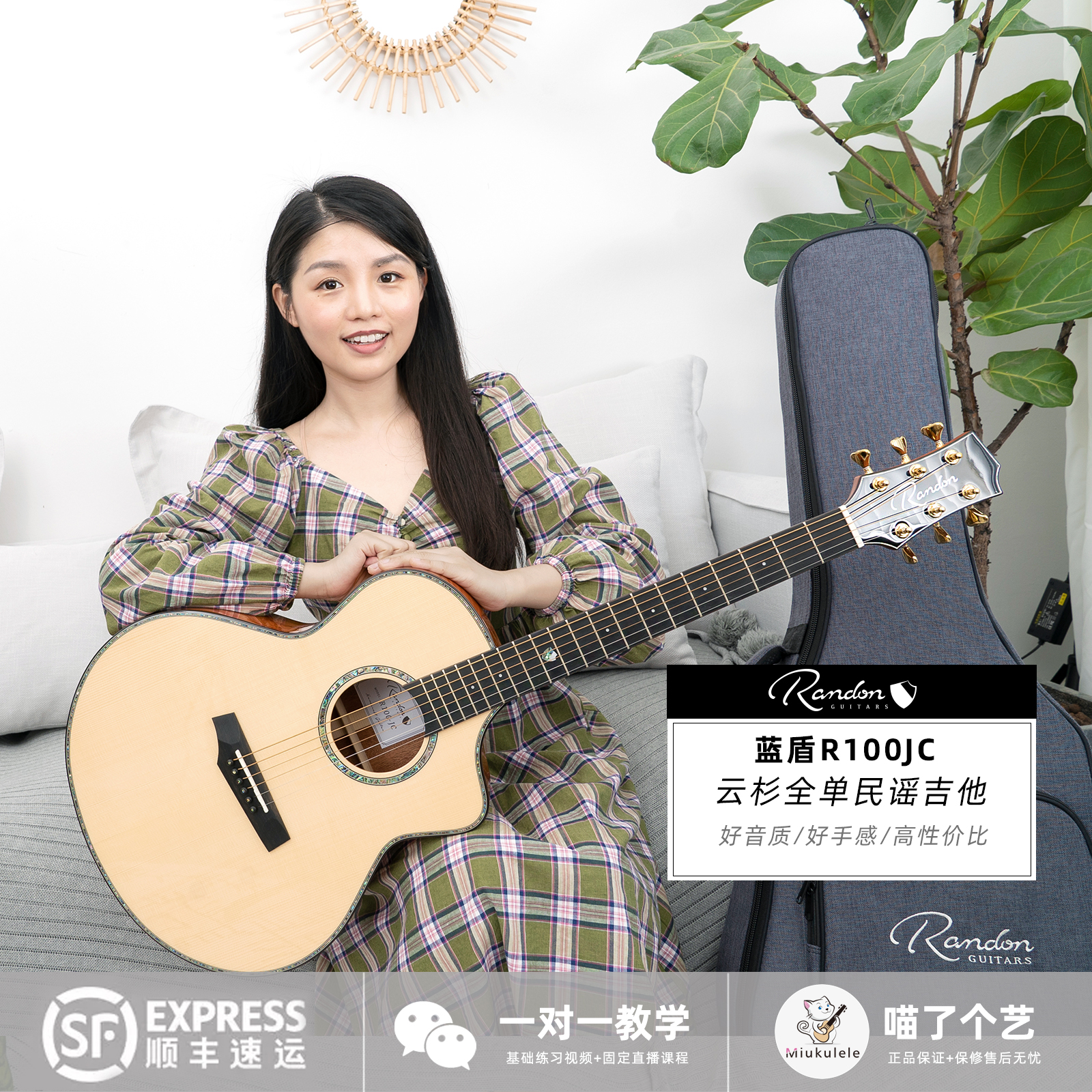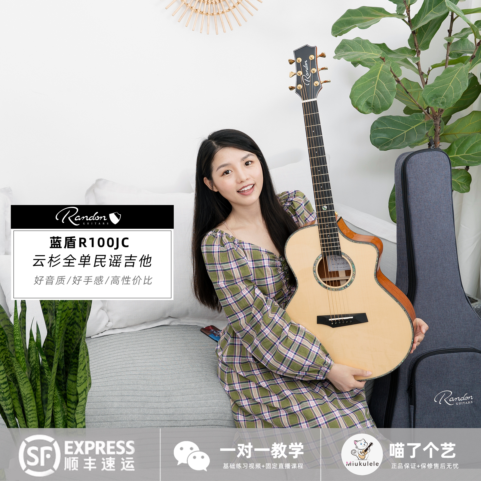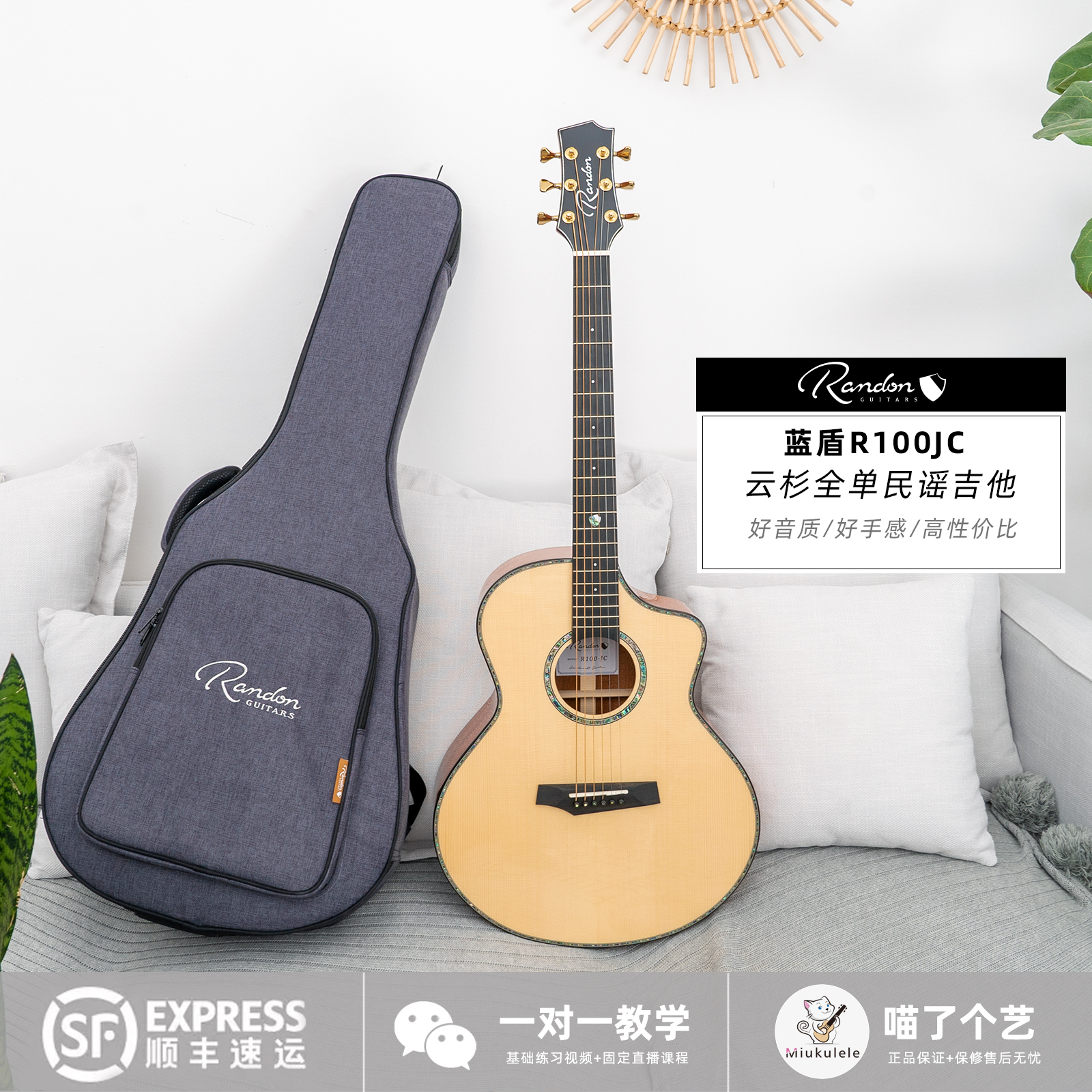 Meow a piece of art Blue Shield R100JC spruce full veneer 40-inch folk guitar beginner men's and women's advanced performance