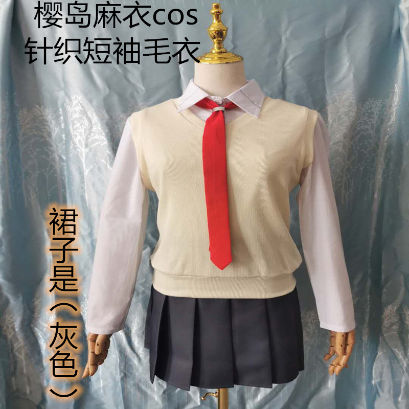 Mai Sakurajima (coat, shirt, skirt, tie, free socks) Sakurajima Mai (coat, shirt, sweater, skirt, tie, free socks) Azusagawa Sakuta (coat, shirt, trousers, tie)