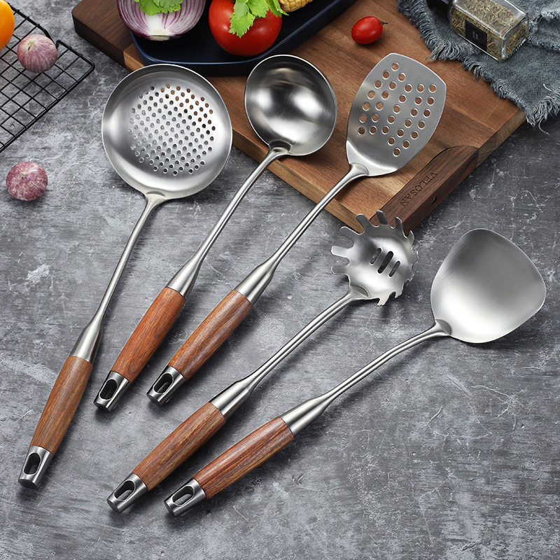 TFBN304 stainless steel rosewood spatula spoon colander full set of cooking spoon shovel household kitchen cooking shovel