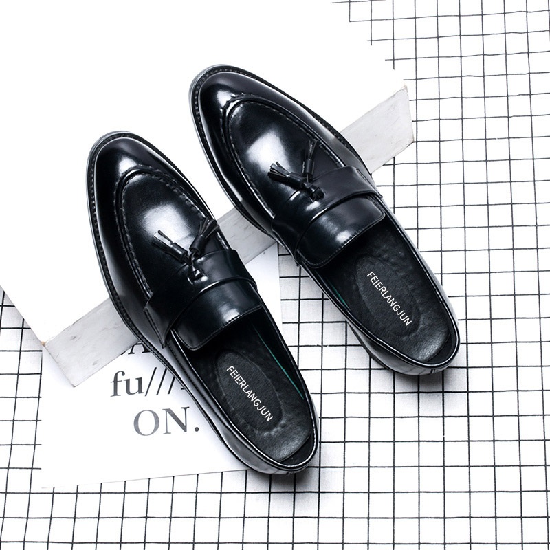 Lefu Shoe Men's One Foot Pedal Han Edition Trend Bright Side Streaming Su Leather Shoes Yingren Wind Retro 100 Hitch Business Casual Shoes