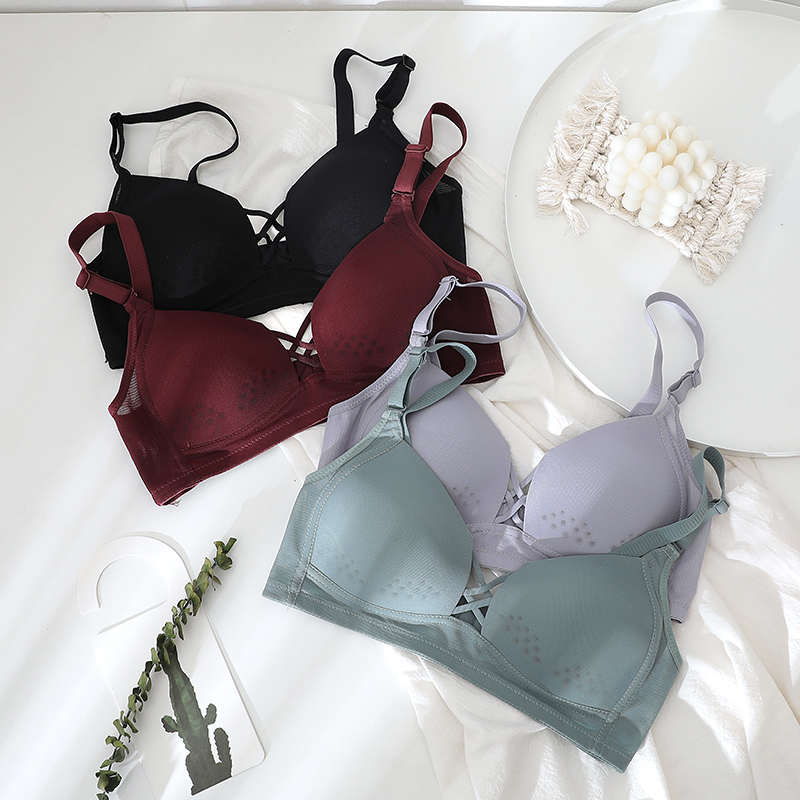 Lingerie Female ultra-thin shrink large chest display small anti-drooping up to collect auxiliary milk No steel ring No-mark small text bra