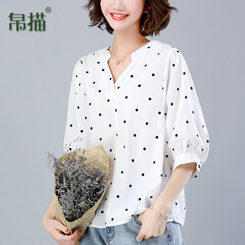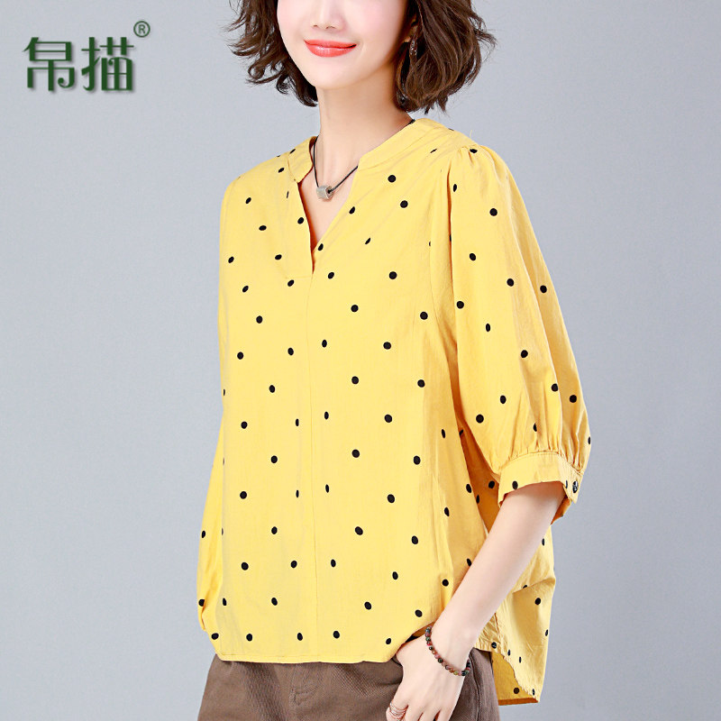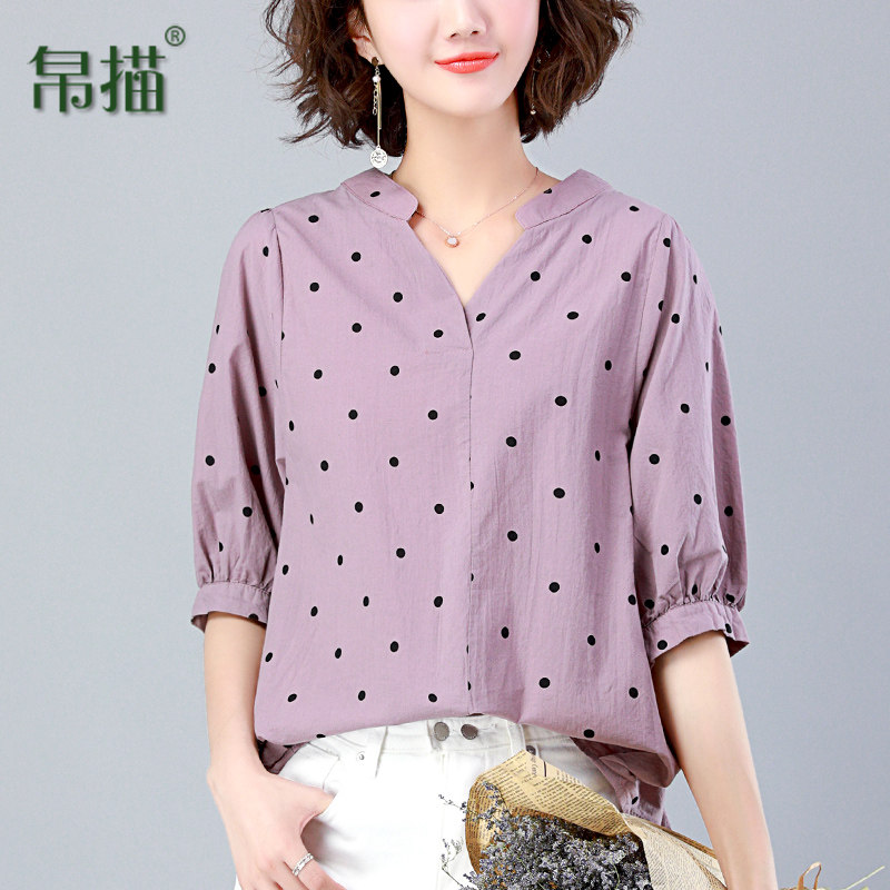 Pure cotton top women's 2021 new summer dress wave point half sleeve loose belly cover middle-aged women's mother short-sleeved t-shirt