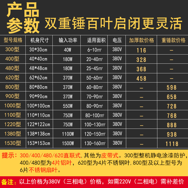 Upgrade thickened model 300 220V (limited to 1 set for this specification) Upgrade thickened model 400 380V Upgrade thickened model 400 220V Upgrade thickened model 4