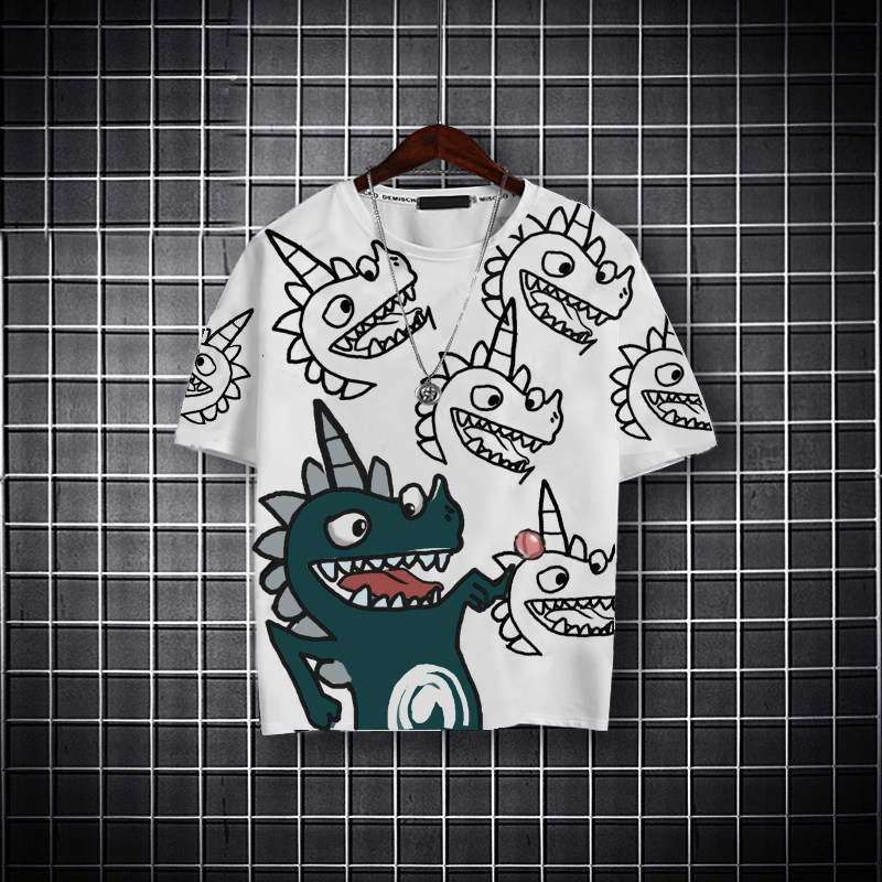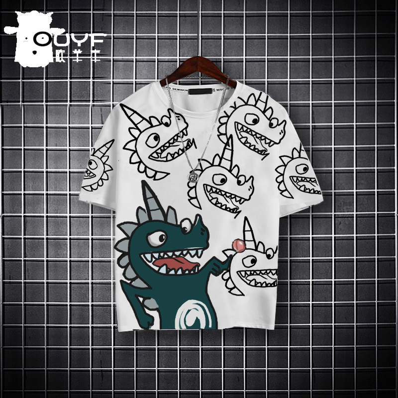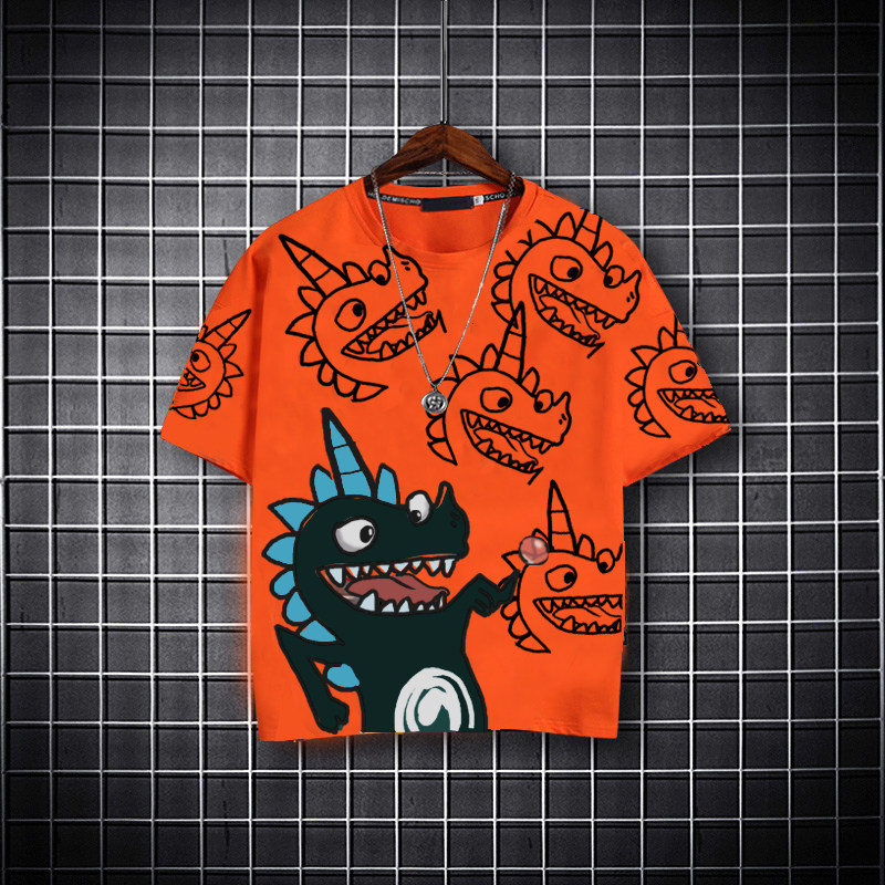 Dinosaur print T-shirt boy short-sleeved children's summer 2021 new big children's top foreign school boys summer fashion tide brand