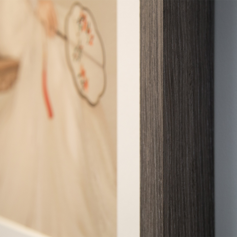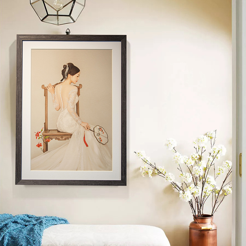 Solid wood frame strip (wood color) Enhanced coarse paper 12-color micro-spray art output Solid wood frame strip (wood color) Suede art paper 12-color micro-spray art output Solid wood frame strip(wood color