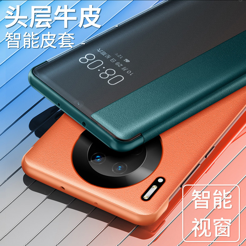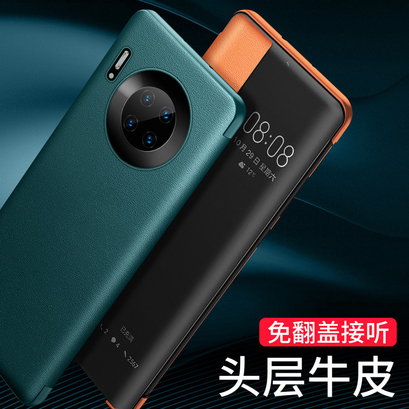 Huawei mate30pro mobile phone protection shell mate30 genuine leather cover flip style female section 5G version vegan leather Qingshan dei special intelligent por protective sleeve anti-fall full package mt30 limited edition high