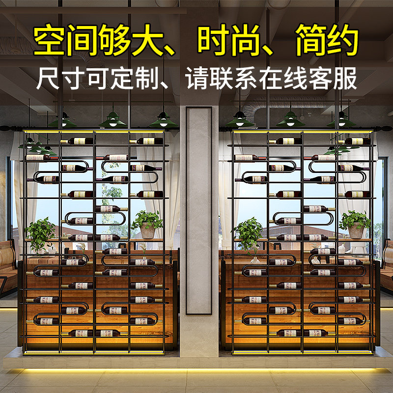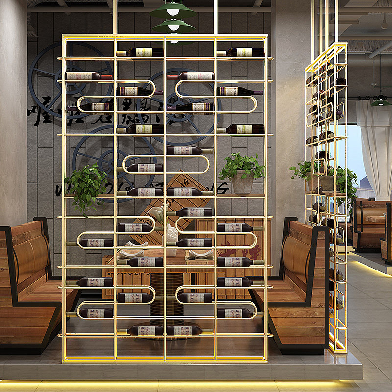 Iron Art Wine Cabinet Leaning Against Wall Cassette Partition Screen Red Wine Rack Industrial Wind Bar Wine Floor Decoration Show Shelf