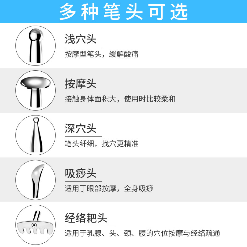 Acupoint massage model (2 massage heads, 2 electrodes), meridian dredging model (4 massage heads, 4 electrodes), upgraded heating model (5 massage heads, 4 electrodes)