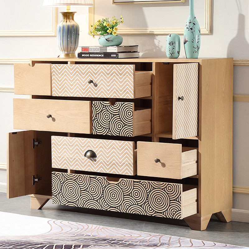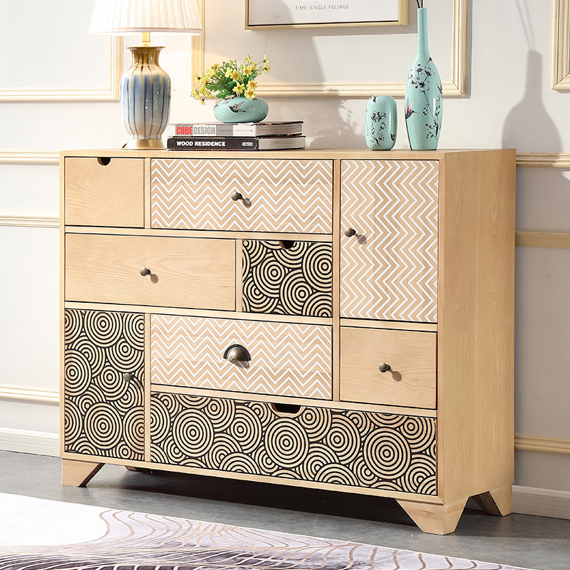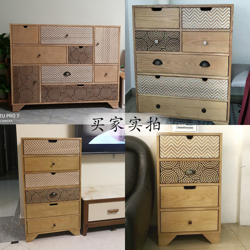 Drawer cabinet solid wood bedroom American Mediterranean five-drawer cabinet pastoral combination bedside storage cabinet Nordic nine-drawer cabinet