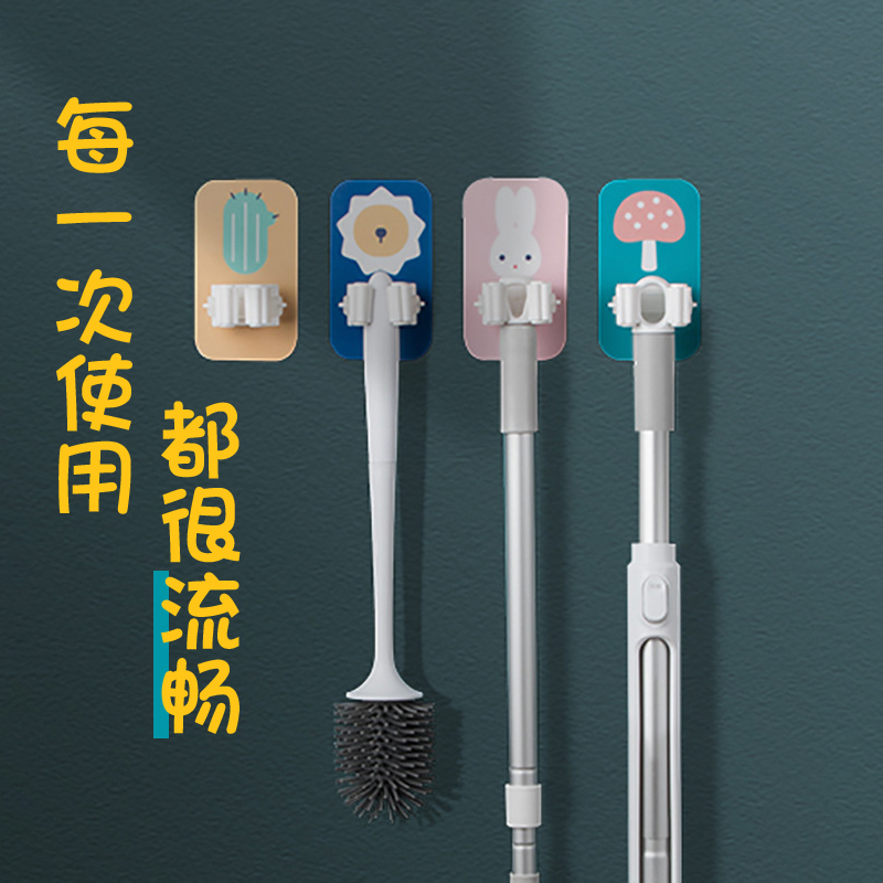 Home Cartoon Free Punching Mop Hook Bathroom Mop Rack Sweep to contain Sticky Hook Powerful Self-Adhesive Mop Clip