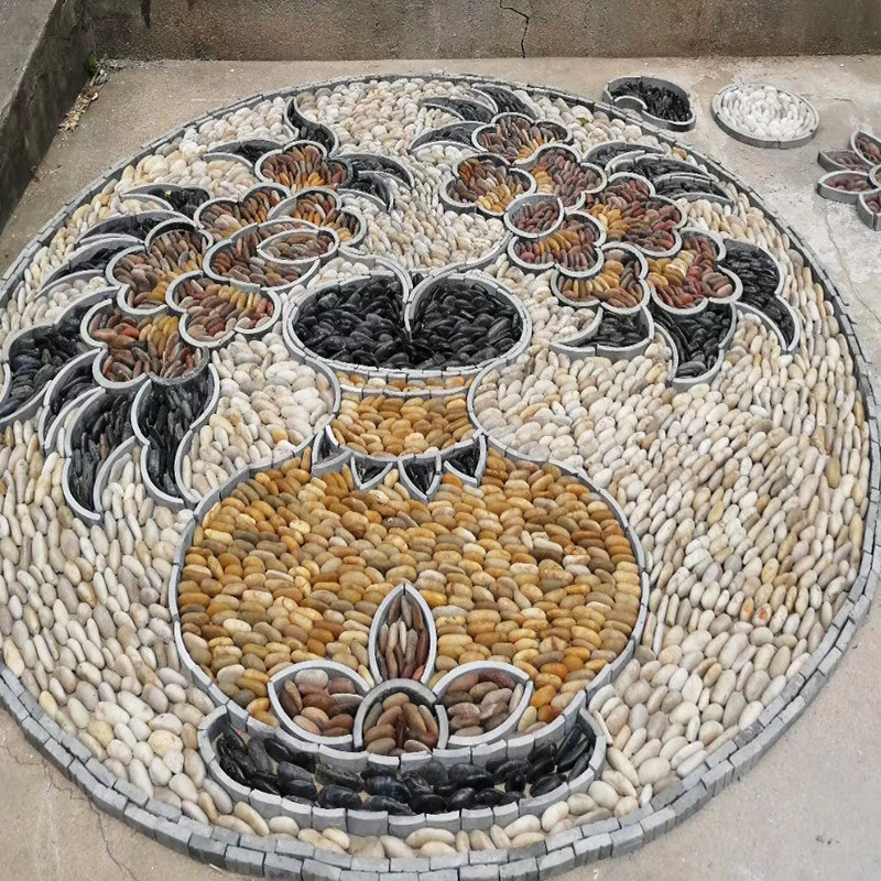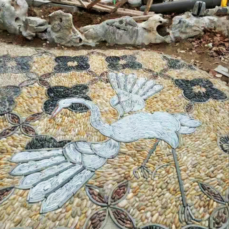 Custom new Chinese style cobblestone puzzle paving park forest landscape parquet background wall decoration stone painting project