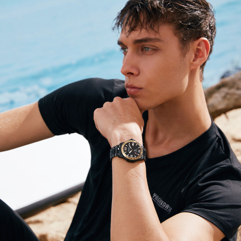 Black disc steel band 519955W04A black disc black steel 519955T04B blue disc leather strap 519955T05C