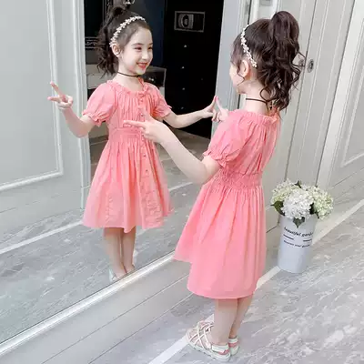 Children's suit girls ' dress summer dress 2021 new middle and large children's summer little girl cotton net red princess skirt