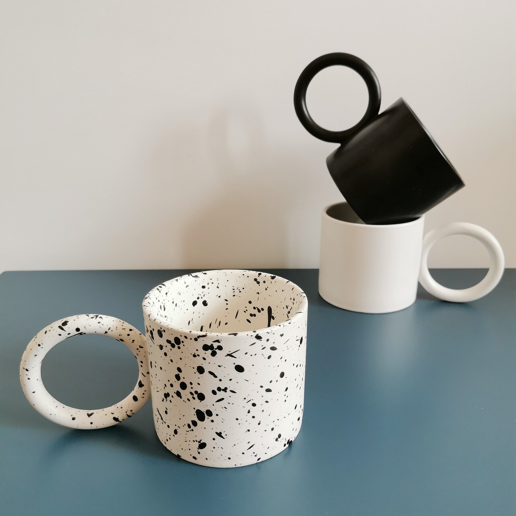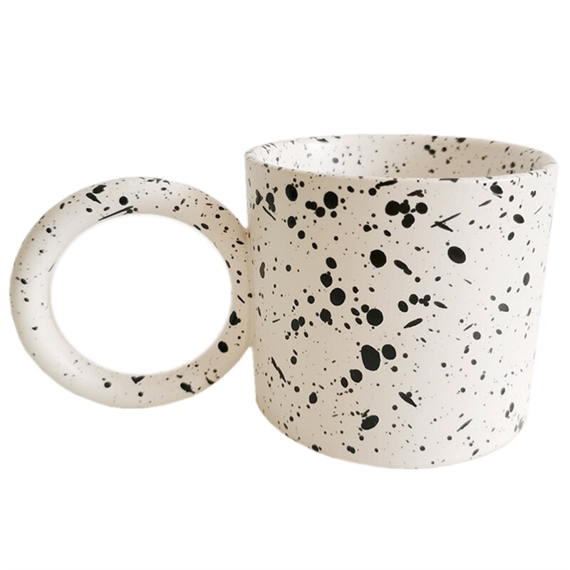 Ceramic mug Nordic ins style Korean niche creative coffee cup geometric ring handle birthday gift