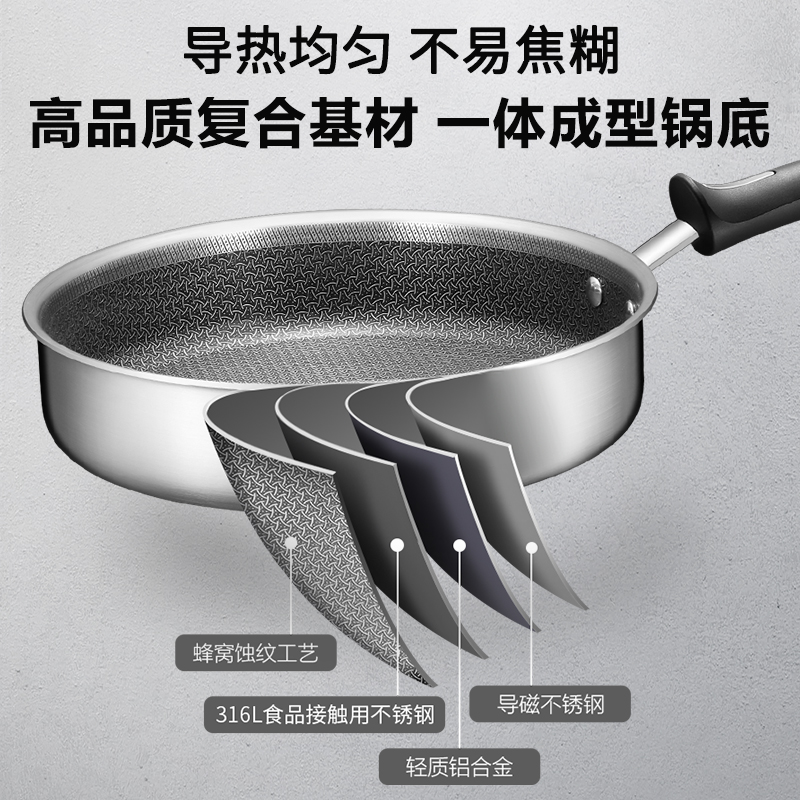 Suber Pan 316L Stainless Steel Steak Frying Pan Home Gas Stove Induction Cooker Pan Pan Pan Near Non Stick Pan