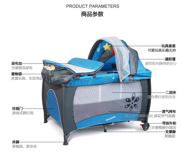 Outlet passable fold crib Children's bed Multi-functional portable baby bed Folding Game Bed BB Bed